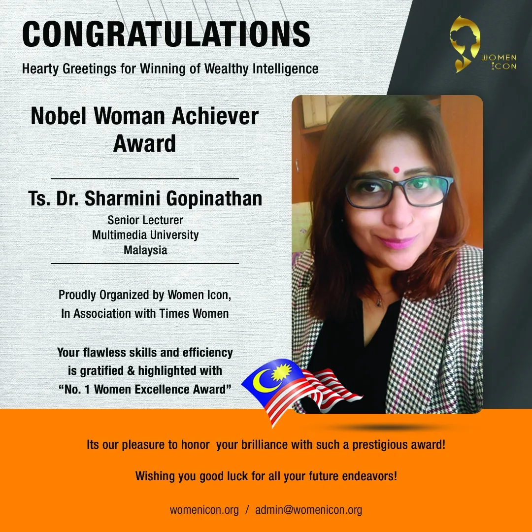 Ts. Dr. Sharmini Gopinathan has recently won the Nobel Woman Achiever Award which was proudly organised by Women Icon, in association with Times Women.