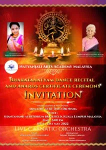 Natyanjali Arts Academy Malaysia which aims to educate the children on the importance of arts, especially in relation to traditional arts and musical instruments will be presenting a Bharatnatyam Dance Recital and Awards Certificate Ceremony which will take place on 21st May 2022 at Shantanand Auditorium Brickfield, Kuala Lumpur.