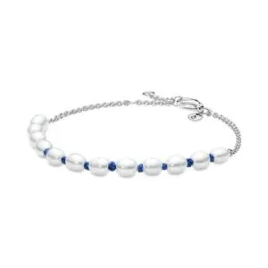 Freshwater Cultured Pearl Blue Cord Chain Bracelet