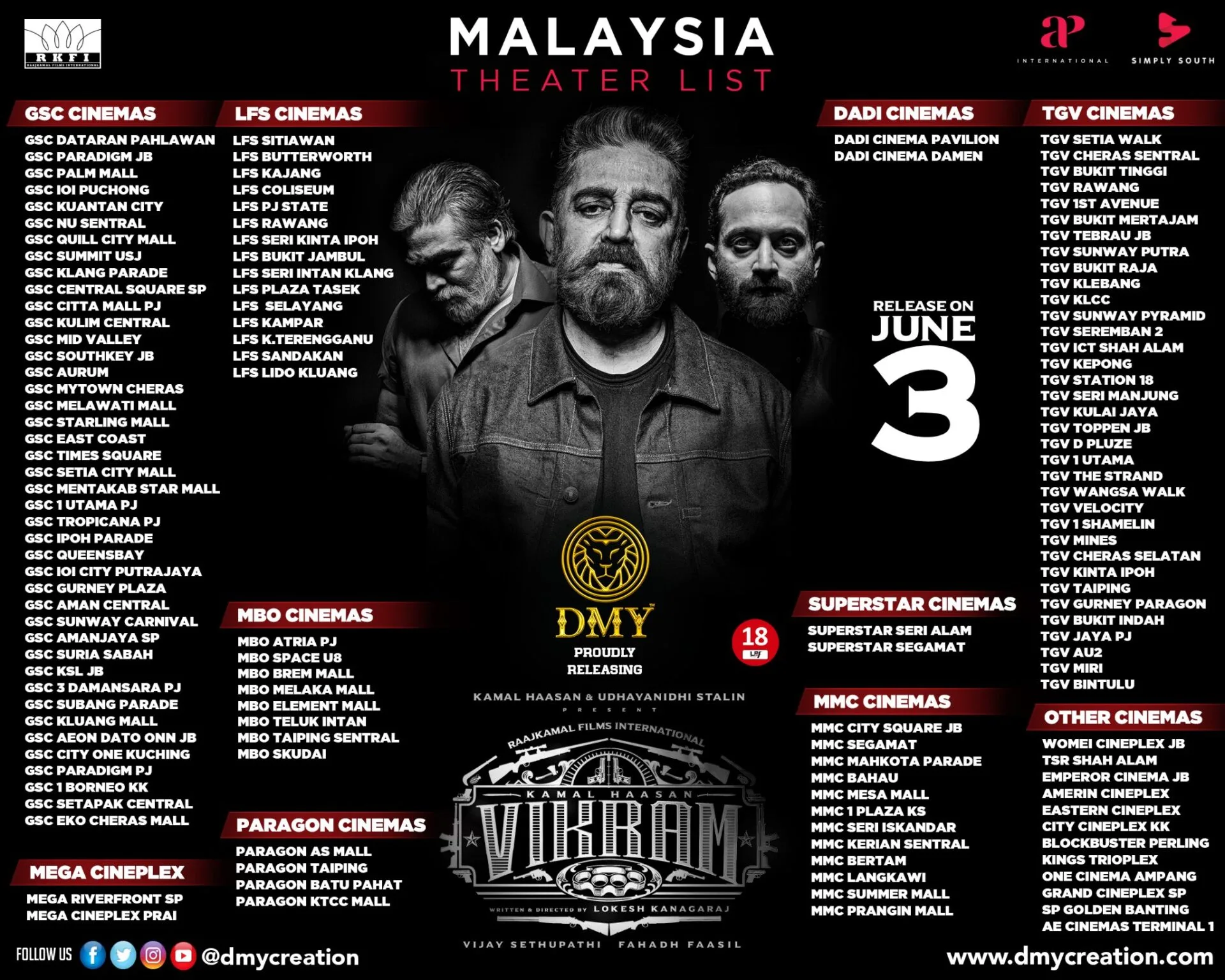 DMY Creation Sdn Bhd, the Malaysian distributor for the movie Vikram, took to its respective social media to announce the movie release across the nation, with the exception of Kelantan.