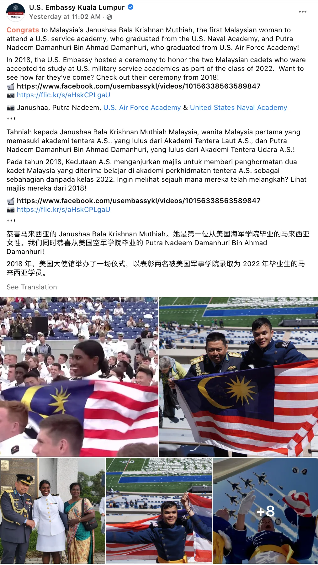 Check out the post by U.S. Embassy Kuala Lumpur: