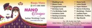 Manohar Raja, who hails from Salem, Tamil Nadu, has established his own business empire in Malaysia. He has spent the last 18 years building his company, Mano Designs from the ground up, with a major concentration on wedding invitations.