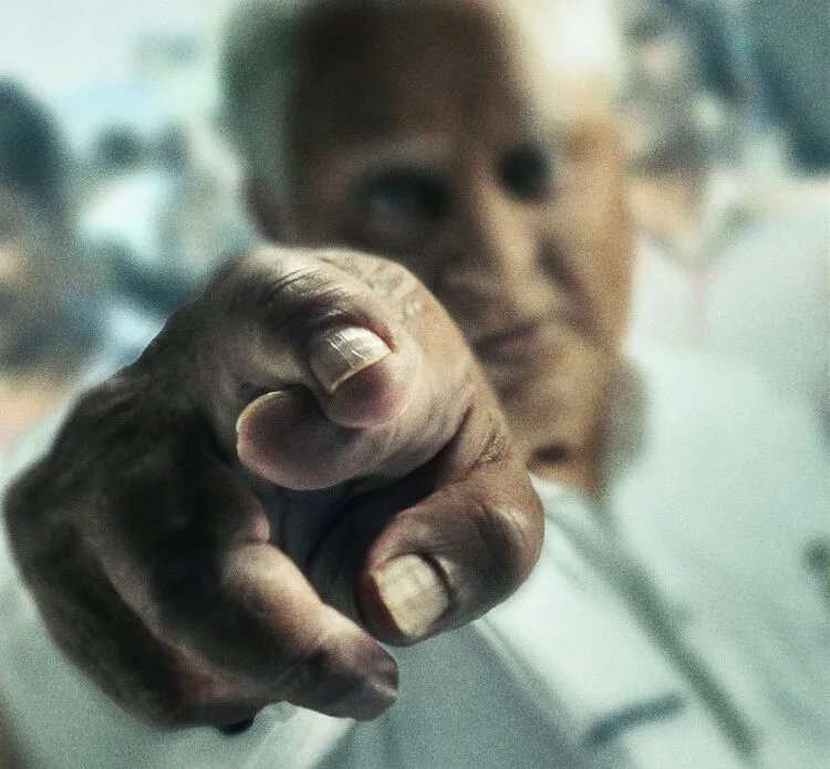The poster depicts Kamal Hassan as Senapathy, with the elderly character pointing to the camera, with his index and ring fingers crossed. This hand gesture is part of the ancient martial art, Varma kalai, which Senapathy used against the bad guys in Indian, the 1996 blockbuster.