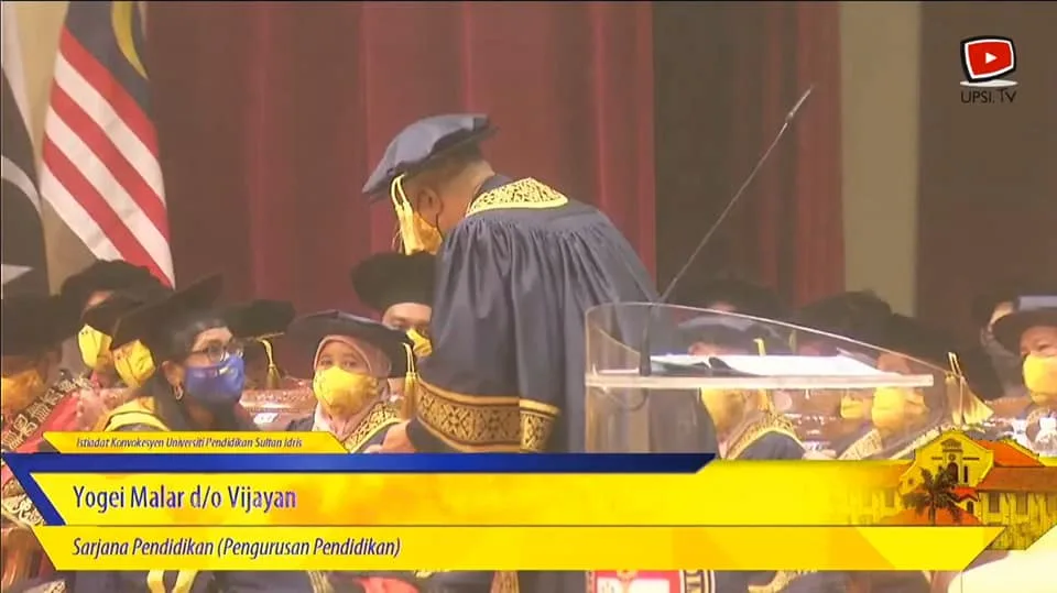 Meet the teacher who has endured a lot of hardship to earn the master’s in Education that she longed for. Nothing stopped this young lady in her bid to pursue her postgraduate studies. Despite being wheel-chair bound, Malar who’s currently working as a teacher at SK Sri Keledang, Hulu Bernam, Selangor, received her scroll along with other graduates at Universiti Pendidikan Sultan Idris (UPSI) 23rd convocation ceremony.