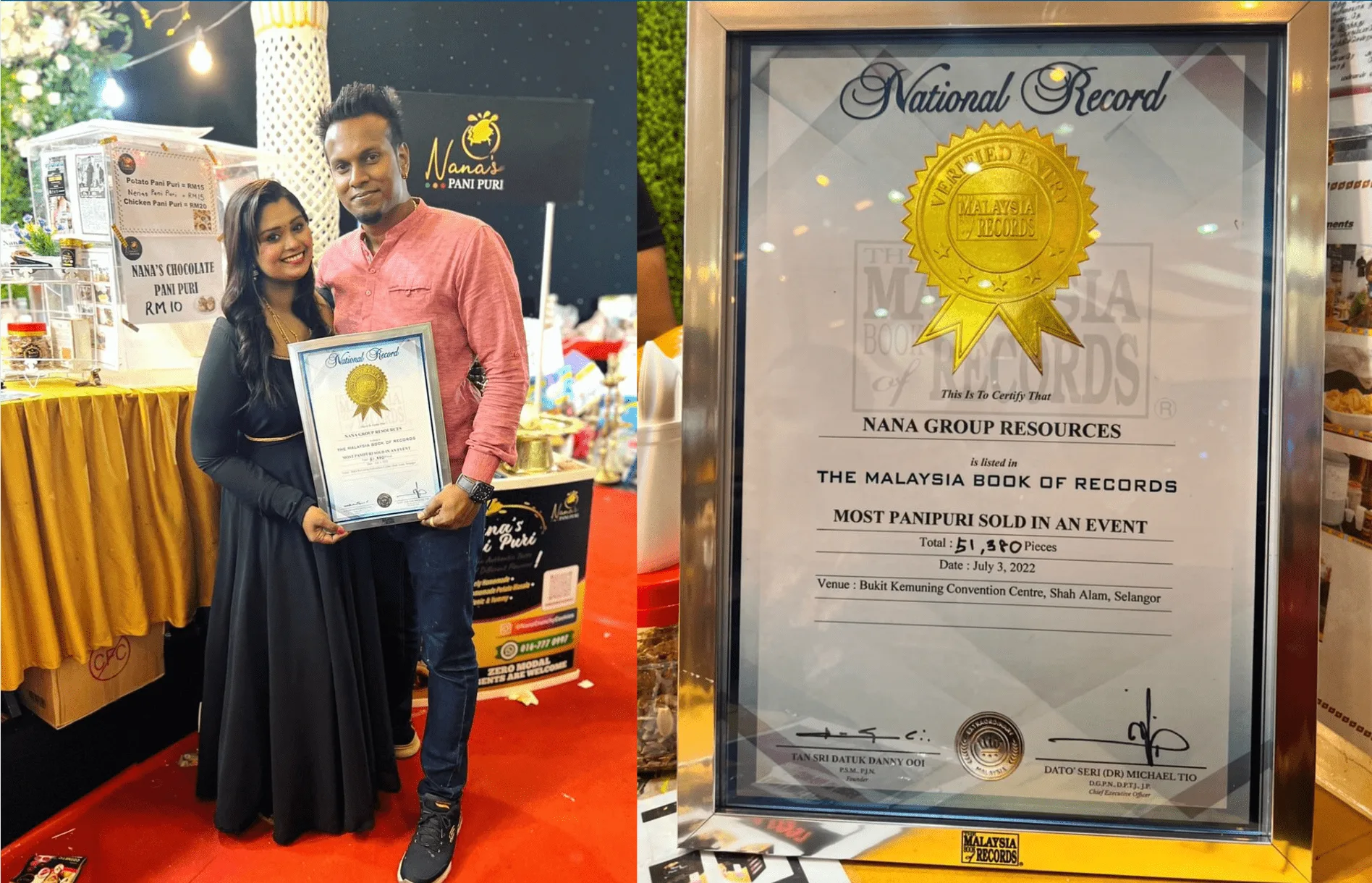 Dr. Nandana has stated that a total number of 51,380 Panipuri had sold out at the event namely, Pondy Bazaar 2.0 which took place from 1st till 3rd of July 2022 at Bukit Kota Kemuning Convention Centre, Shah Alam. The ultimate record was achieved on the last day of the event (3rd July) in the presence of the audience and also organisers.