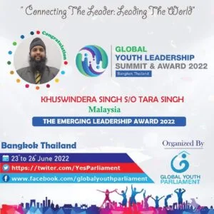 With that being said, Khuswindera Singh Tara Singh has represented our beautiful country Malaysia as a delegate for the Global Youth Leadership Summit (GYLS) 2022 in Bangkok, Thailand recently.
