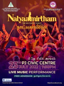 This divine dance recital will be held on 23rd July 2022 (Saturday) at PJ Civic Centre (Dewan Sivik MBPJ, Jln Yong Shook Lin, Petaling Jaya) which will be accompanied by a Live Music Performance. The recital will start at 7.30pm but you may also come as early as 6.30pm.