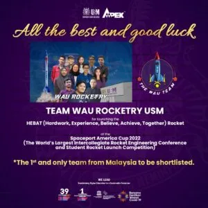 The FIRST and ONLY team from Malaysia has made us proud by clinching the 11th place at the most prestigious competition that took place in New Mexico from 20th to 25th June 2022. We were amazed to know that they were ranked out of 153 teams in the world’s largest Intercollegiate Rocket Engineering Conference (IREC).