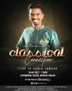 Watching the magic of Nehsan Selvaraj In Classical Connection should be on your bucket list. To get your tickets to Nehsan Selvaraj in Classical Connection Live in Kuala Lumpur, click HERE.