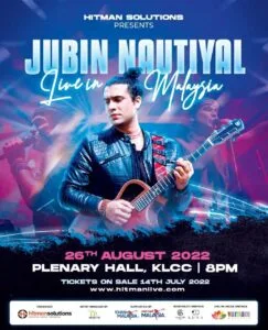 ‘Jubin Nautiyal: Live in Malaysia’ is set to happen on the 26th August 2022 (Friday) at 8pm at the prestigious event space, Plenary Hall, KLCC. (This will be his First South East Asia concert)