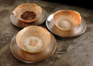 Appam lovers, you probably only ever eat appam with coconut milk, but have you ever combined it with an egg, jaggery sugar, or iddi sambal (mashed sambal)? Then, you’ll be amazed by this.