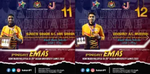 For athletics, Darshini Murugan from UPM bagged the Bronze award for Women’s 200m in 26.00s.