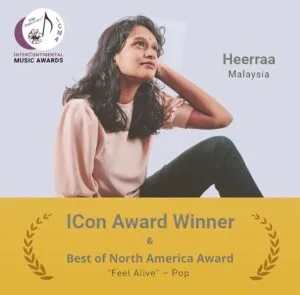 Impressive strong vocals, captivating performances and talent for songwriting has made Malaysia-born singer-songwriter Heerraa clinches the top honour, the ICon Award for her outstanding performance at the 10th Annual InterContinental Music Awards Competition 2022 (ICMA) on 31st July.