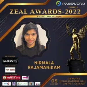 She received the recognition on 5th August at the Zeal Awards 2022 in Chennai, India, for her varied themed of motivating content videos that provided many audiences with insights and realisations that eventually improved their quality of life.