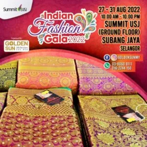 Golden Sun Xhibition will be presenting the Indian Fashion Gala 2022 with the most colourful and fun-filling family shopping jamboree for the upcoming Deepavali. This shopping experience will be a magnificent fiesta that comprises various exquisite pieces of jewellery, beautiful lifestyle wear, delectable food and more.