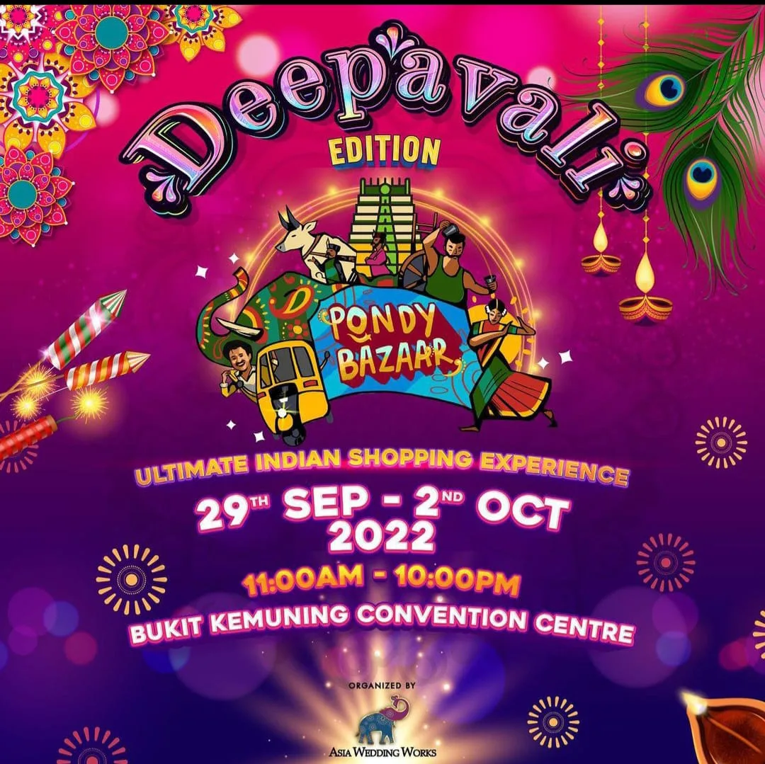 Asia Wedding Works will be organising a special DEEPAVALI EDITION of PONDY BAZAAR at Bukit Kota Kemuning Convention Centre (BKCC) from 29th September to 2nd October 2022 (11AM – 10PM).
