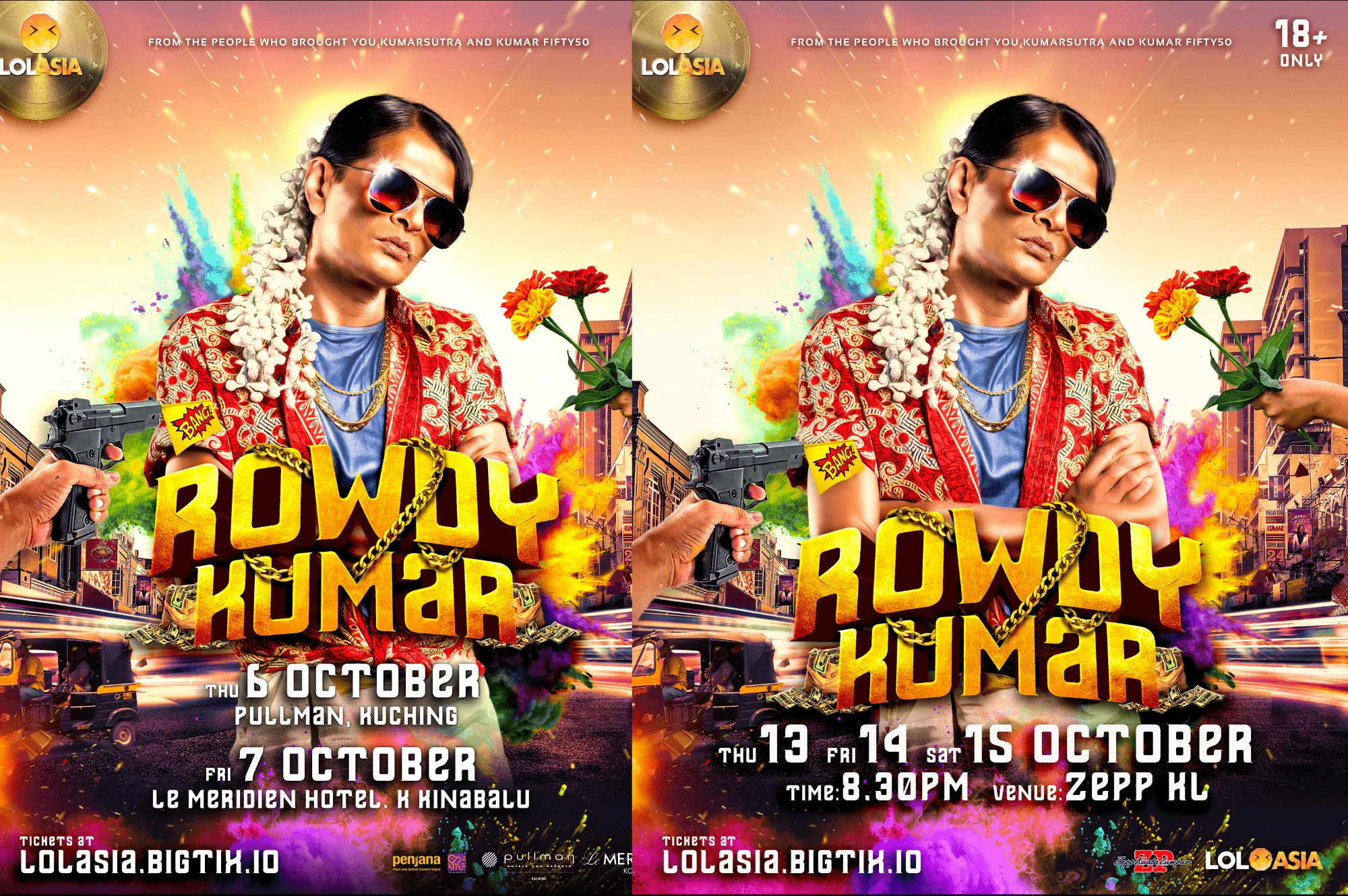 “I must thank LOL Asia for inviting me again and including Borneo dates into the schedule. It is a huge honour for me to perform in Kuching and Kota Kinabalu and meet my beloved fans and comedy enthusiasts in general to debut these new materials that I have written and collated to create ROWDY KUMAR. And of course, back to Kuala Lumpur for a 3-night show will be the icing on the cake. Get your tickets, and I will see you soon!” quips the ever energetic and flamboyant Kumar.