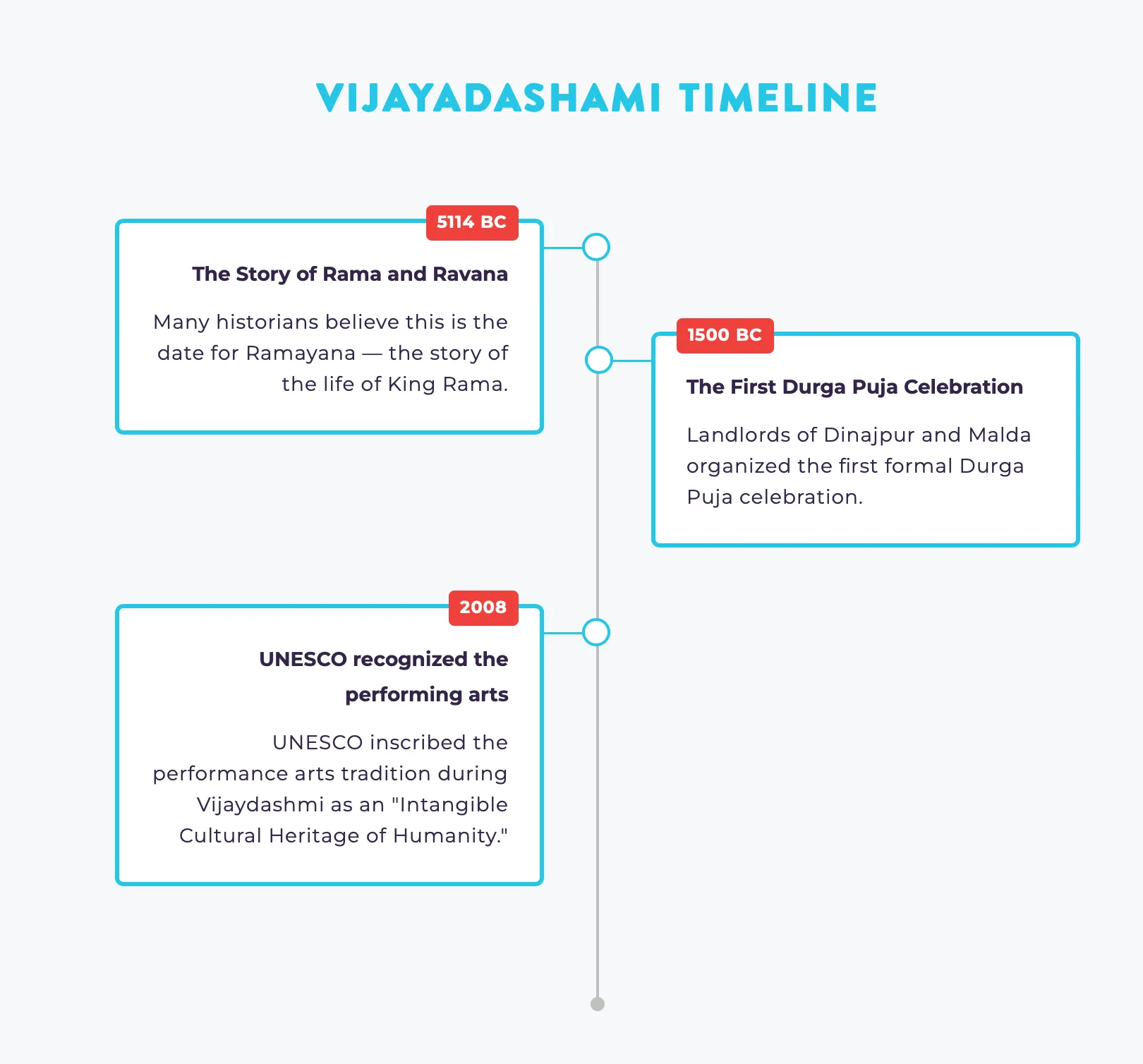 Vijayadashmi, also known as Dussehra, marks two celebrations; first the victory of goddess Durga over the demon Mahishasura and the victory of Rama over Ravana.