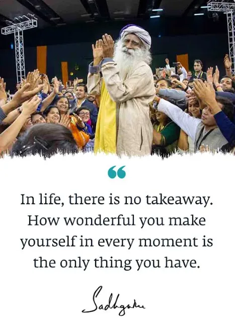In life, there is no takeaway. How wonderful you make yourself in every moment is the only thing you have – Sadhguru