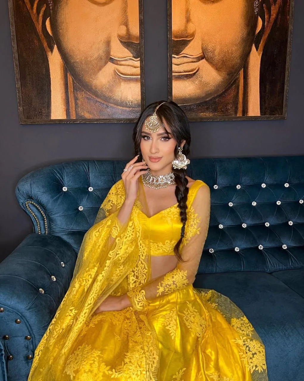 - Ajunee Kaur – Ajunee dolled-up with a radiant-yellow lehenga with matching silver jewellery.
