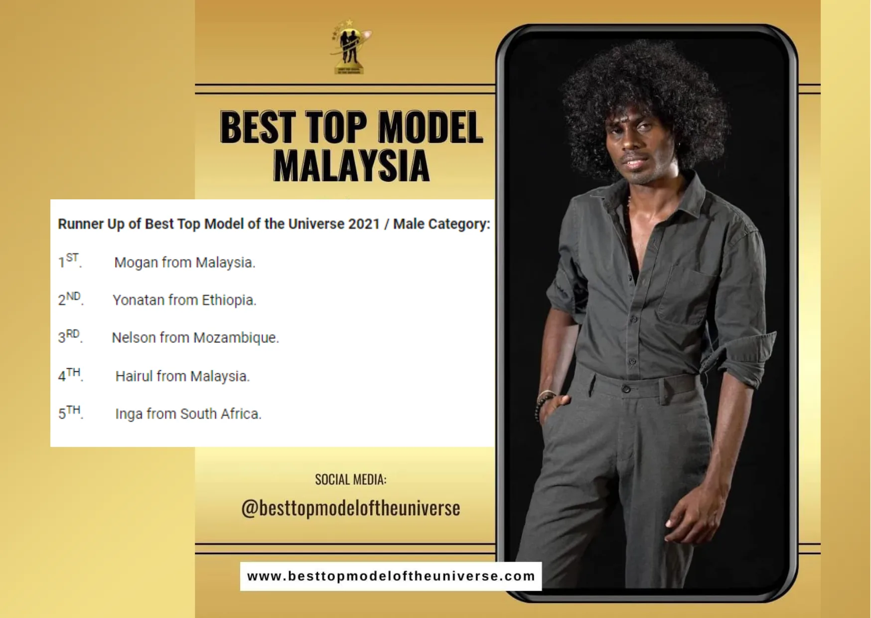 In addition, Hairul Hellas is also another Malaysian who has been listed in the Top 21 and ranked as 4th Runner-up in this modelling contest.