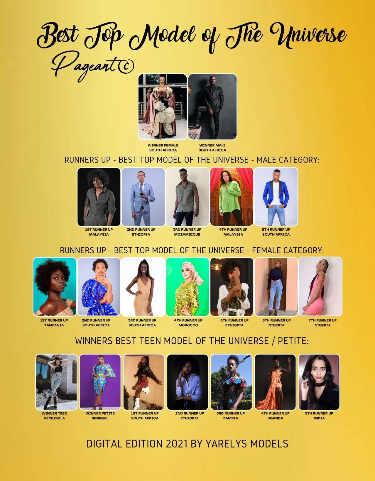 This is the first international model contest in Milan helmed by the international producer, Yarelys Monoche. More than 450 models have participated in the worldwide casting and competed to be the new faces of international modelling. Participants from Angola, Armenia, Bhutan, Burundi, Cameroon, Canada, Congo, Ethiopia, Fiji, Gabon, Ghana, Guinea Bissau, India, Ivory Coast, Jamaica, Malawi, Malaysia, Morocco, Mozambique, Nepal, Nigeria, Philippines, Senegal, Sierra Leone, South Africa, India, Tanzania, Tunisia, Uganda, Uzbekistan, Venezuela, Zambia and Zimbabwe are among the countries who participated in this modelling contest.