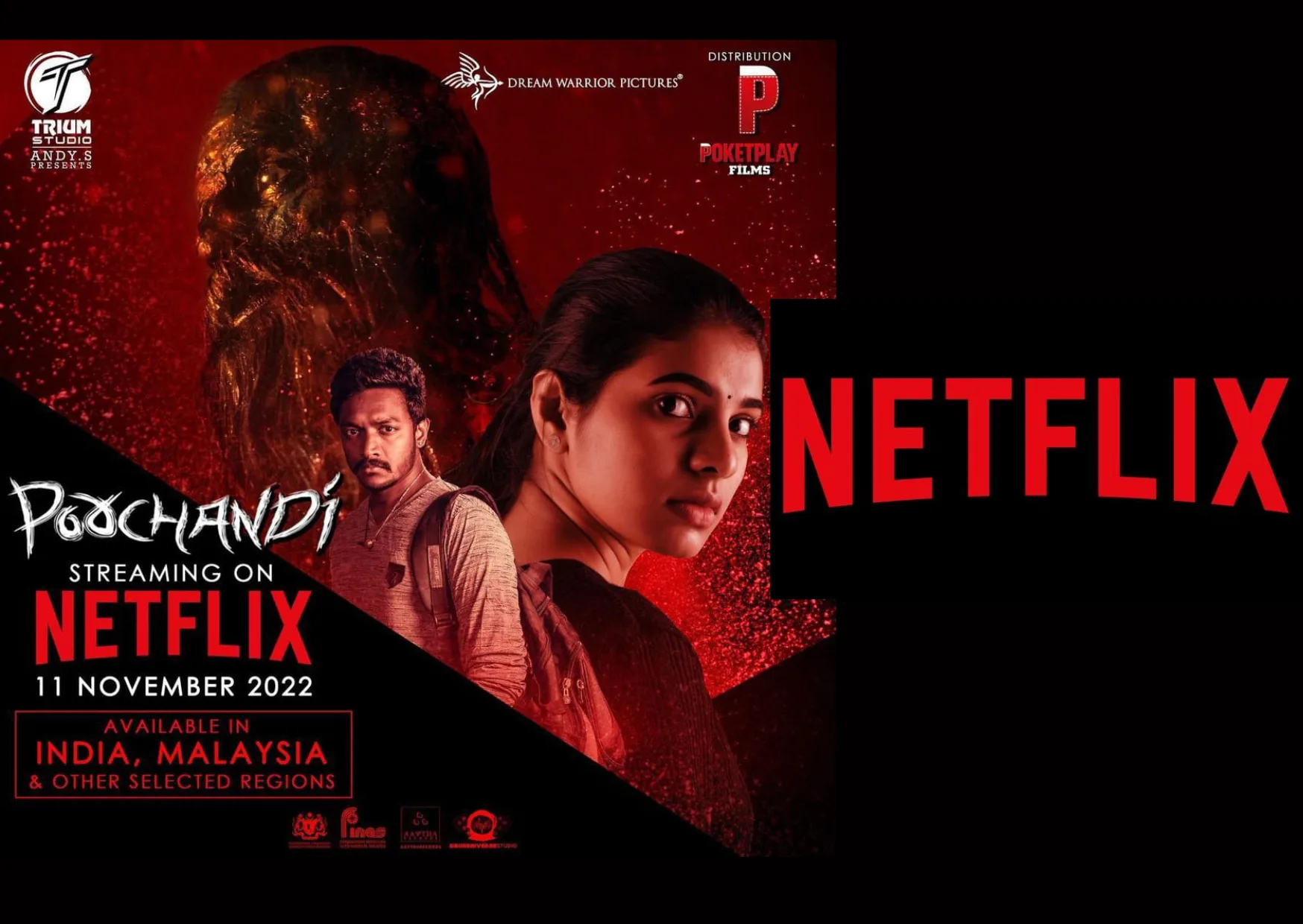 Yes, you heard it right. The highly-acclaimed horror film by director JK Wicky, Poochandi (Bogeyman) will be greeting the Netflix audience tomorrow, 11th November 2022 onwards. This ancient-thriller film will be available for streaming in Malaysia, India, and other selected regions around the world.
