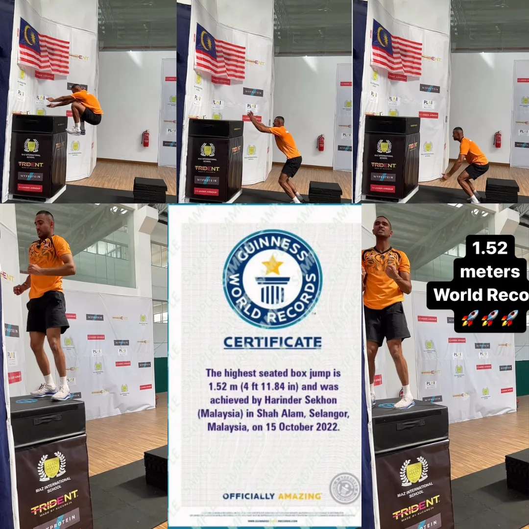 The 31-year-old athlete marked an impressive spot in Guinness World Records by setting the Highest Seate Box Jump at 1.52 metres (4ft 11.84inch tall) in Shah Alam, Selangor.
