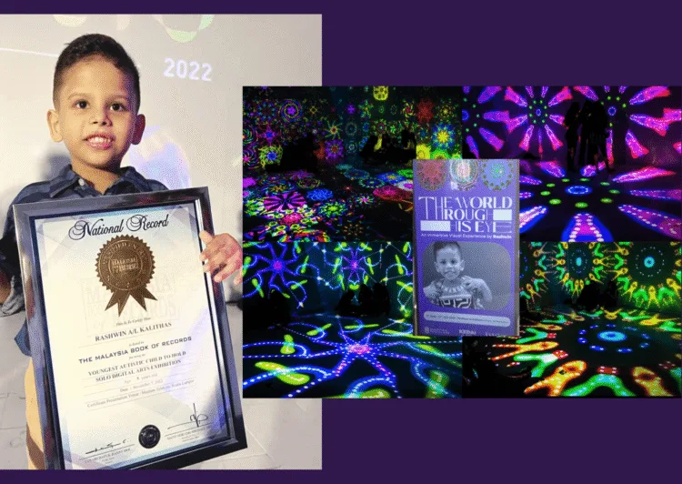 He who was born with Autism Spectrum Disorder (ASD) secured a spot in the Malaysia Book of Records (MBOR) for being ‘The Youngest Autistic Child To Hold Solo Digital Arts Exhibition’.