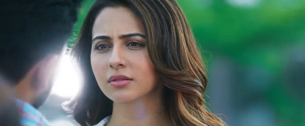 What about Dev’s romantic pursuit? In Vaaranam Aayiram, Suriya and the Sameera Reddy character hit it off in the train. There’s actual sexual chemistry between the two. They go on dates. Only then does Suriya drop everything and run to the US to woo her. Here, Dev sees her (Rakul Preet Singh’s Meghna) profile on Facebook and starts stalking her. When she shows disinterest, he buys a bunch of helium balloons that spell out her name and lets em fly outside her office window, as a grand gesture. When she’s still not interested, he persists. All of this would be fine if the film came with a woke twist ala 500 Days of Summer or Vinnaithandi Varuvaya, but it doesn’t, so we’re left feeling like it’s 1995.