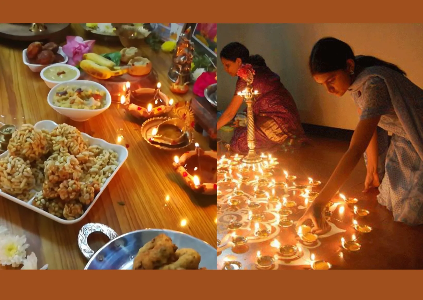 After dawn, lit the agal vilakkus in all corners of the house. Mainly place those lamps at the main entrance. It is believed that by doing this, evil forces are warded off.