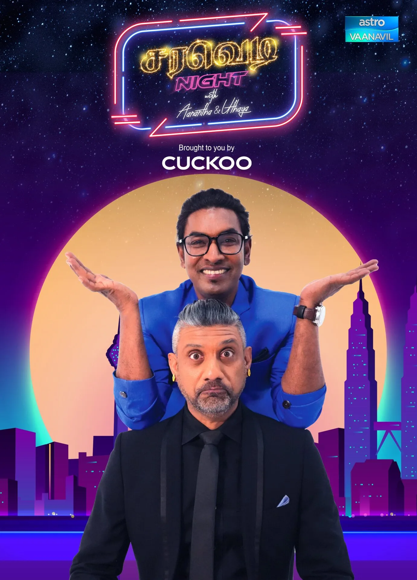 Brace yourselves to get submerged in the hilarity-filled live local Tamil infotainment talk show, ‘Saravedi Night with Aanantha & Uthaya’. This exciting show will be premiering on 12th December 2022 at 9pm on Astro Vaanavil (Ch 201) via TV, Astro GO and On Demand.