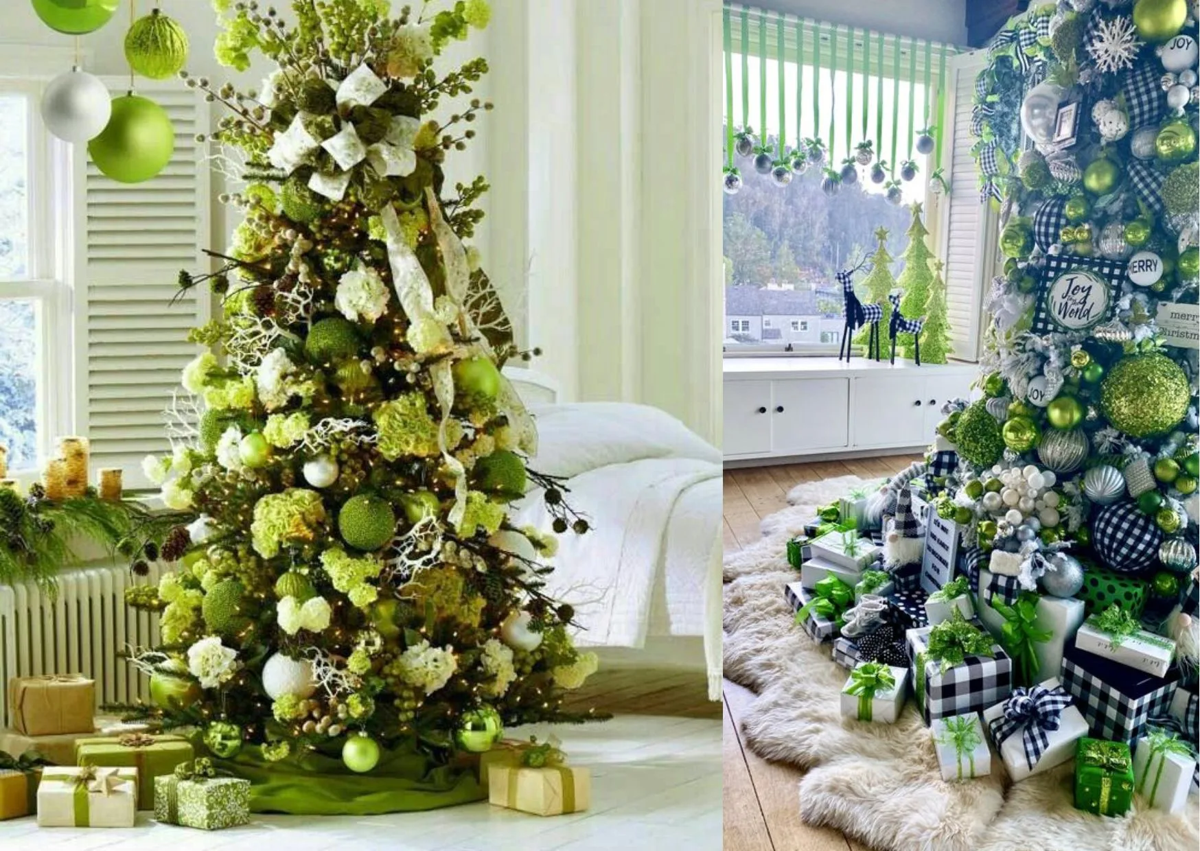 Let’s leave out the red and fill the pine with shades of greens instead. Associated with nature, green has an innate calming quality that is welcome during the busy winter season.