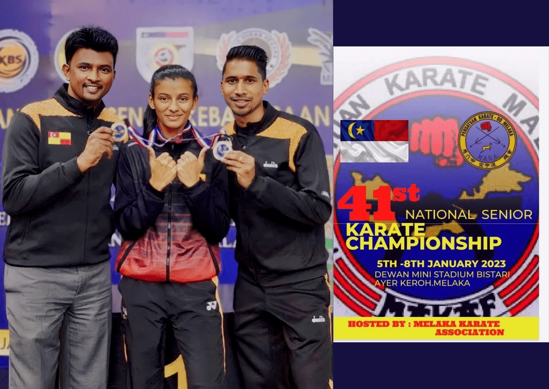 On the 8th of January 2023, Shahmalarani Chandran magnificently clinched not one but TWO Gold medals at the 41st National Senior Karate Championship 2023 which was held at Melaka Historic City Council basketball hall in Bukit Serindit. With her killer kicks, this 25-year-old athlete sealed two golds for Individual Kumite below 50kg category and the Female Team Kumite category.
