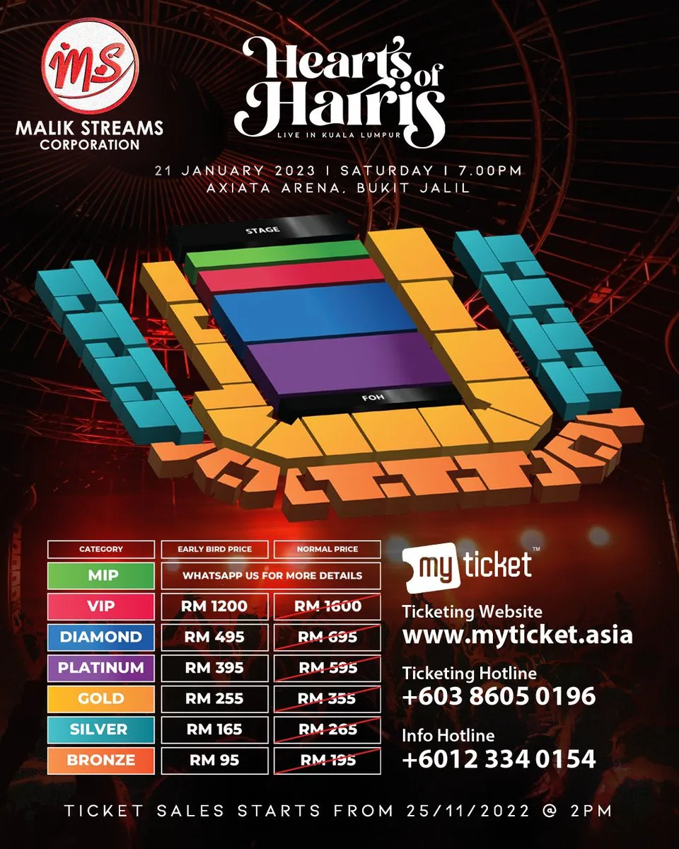 The Hearts of Harris Concert is organised by Malik Stream Corporation. Along with that, Harris Jayaraj will be making his way to Malaysia very soon. The concert is set to be a one-night dreamy performance that will be held at the Axiata Arena, Bukit Jalil on 21 January 2023.