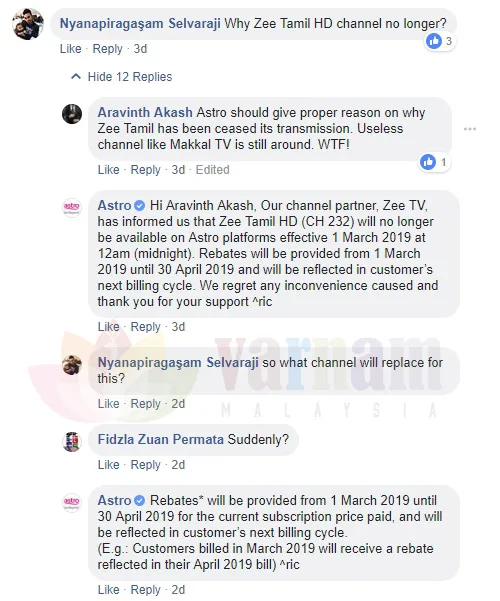 Astro’s customer service have also confirmed that customers on the Samrat package will be given rebates due to the cessation of the channel – but stopped short of confirming whether customers will be rebated in full or in part. Customers who have signed up for the Samrat pack are also not able to remove the pack at this point in time.