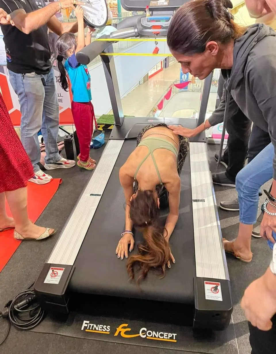 During the record attempt, she encountered chest pain and tightness. So she had to slightly slow down and was treated by the medical team on standby.