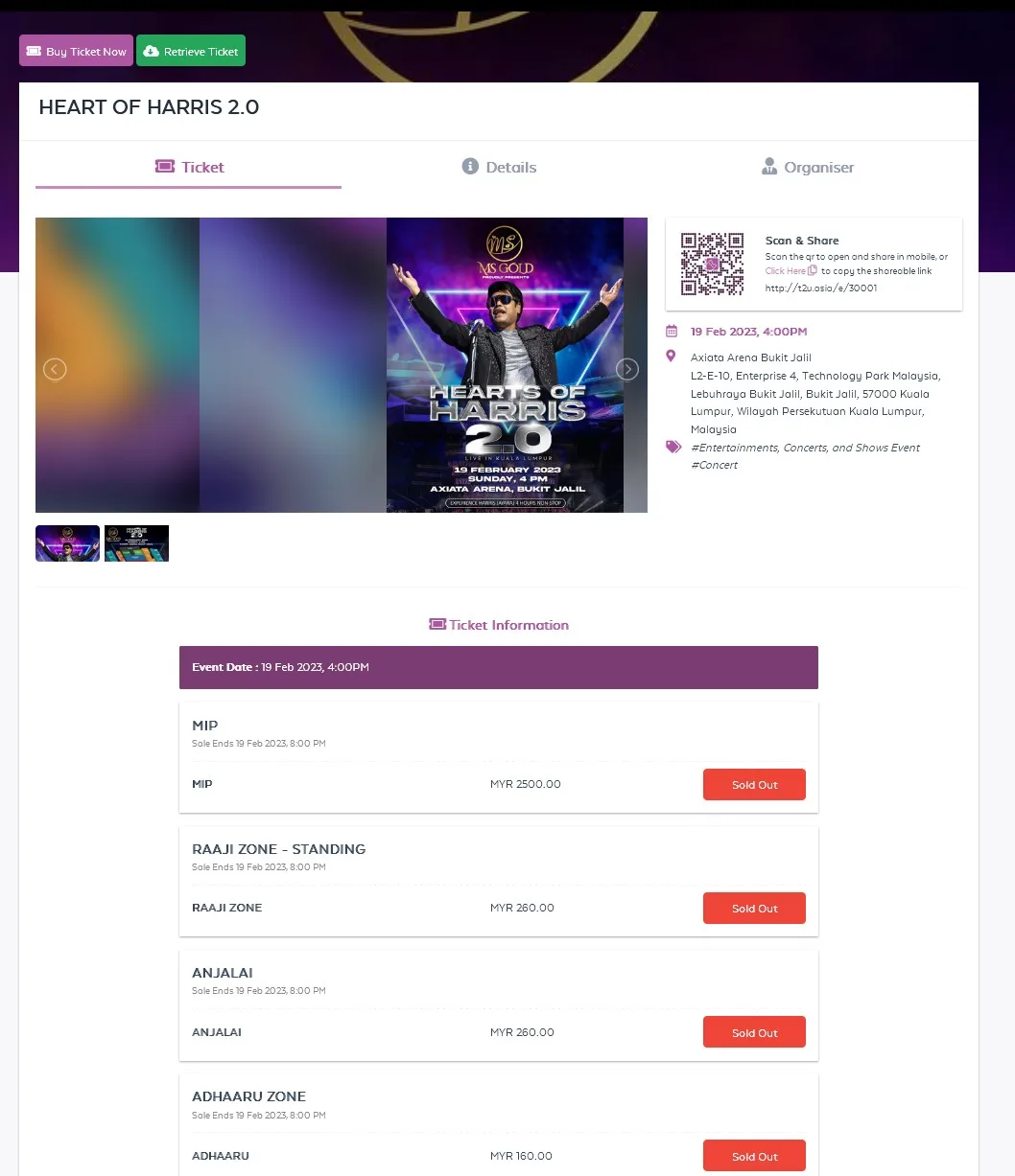 Barely 2 weeks after his sold out show at Axiata Arena on January 21st, all 12,500 tickets for Hearts Of Harris 2.0 that went on sale this afternoon at was completely sold out within 45 minutes.