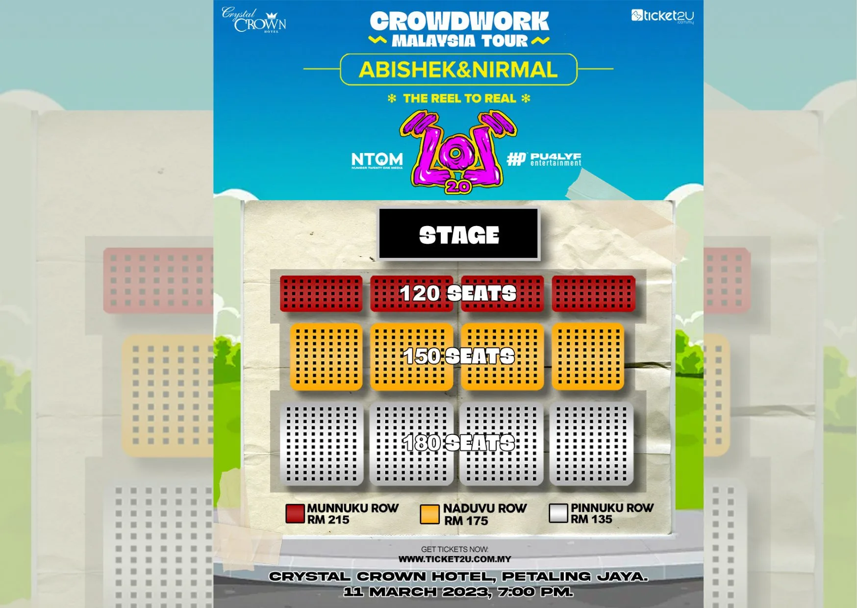 A two-day back-to-back comedy! LOL 2.0 will be held at the Crystal Crown Hotel, PJ on 11 March 2023. This 3-hour comedy show will start at 6.30 pm and ends at 9.30 pm. Get your seats booked HERE!