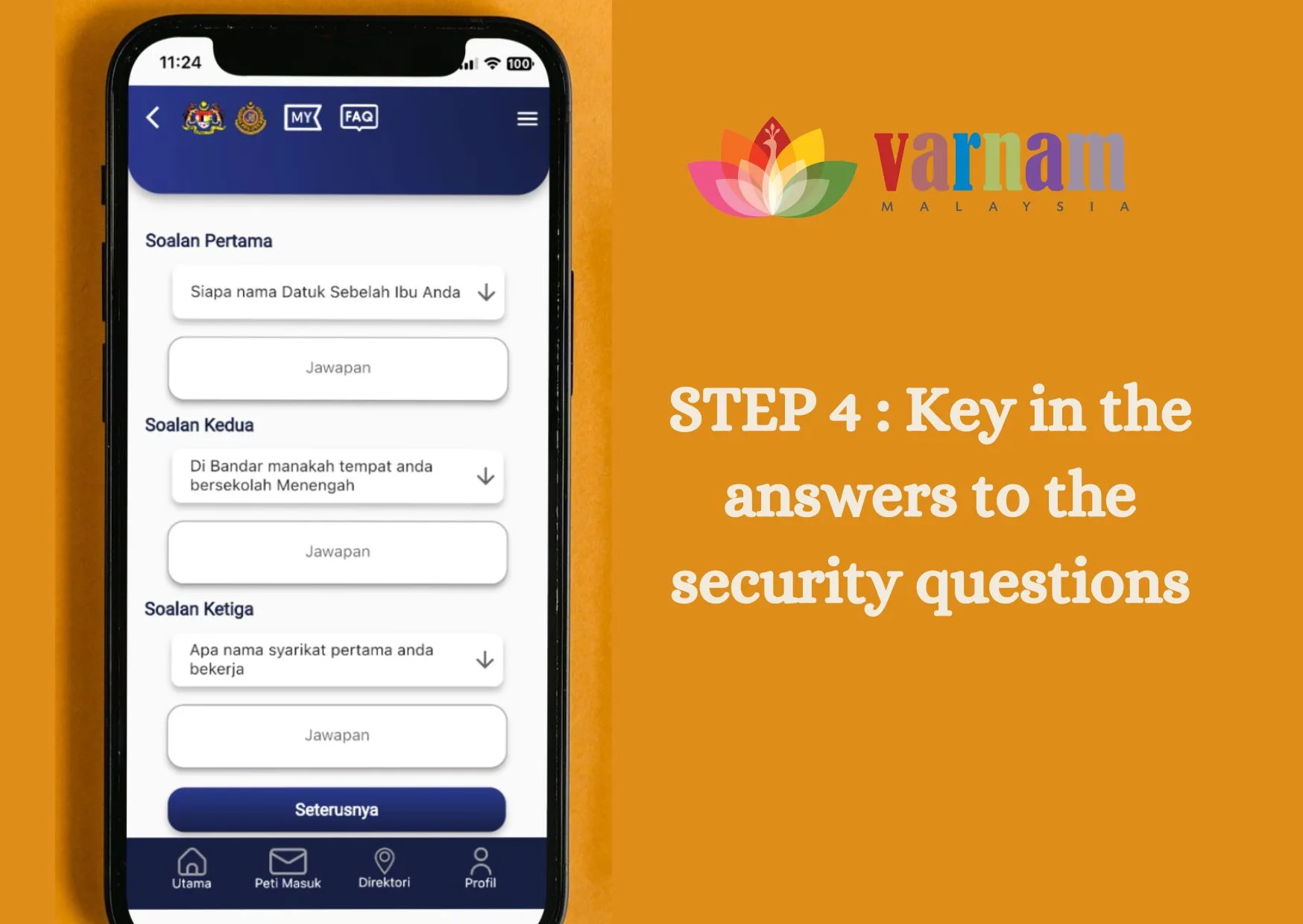 Key in the answers to your security questions