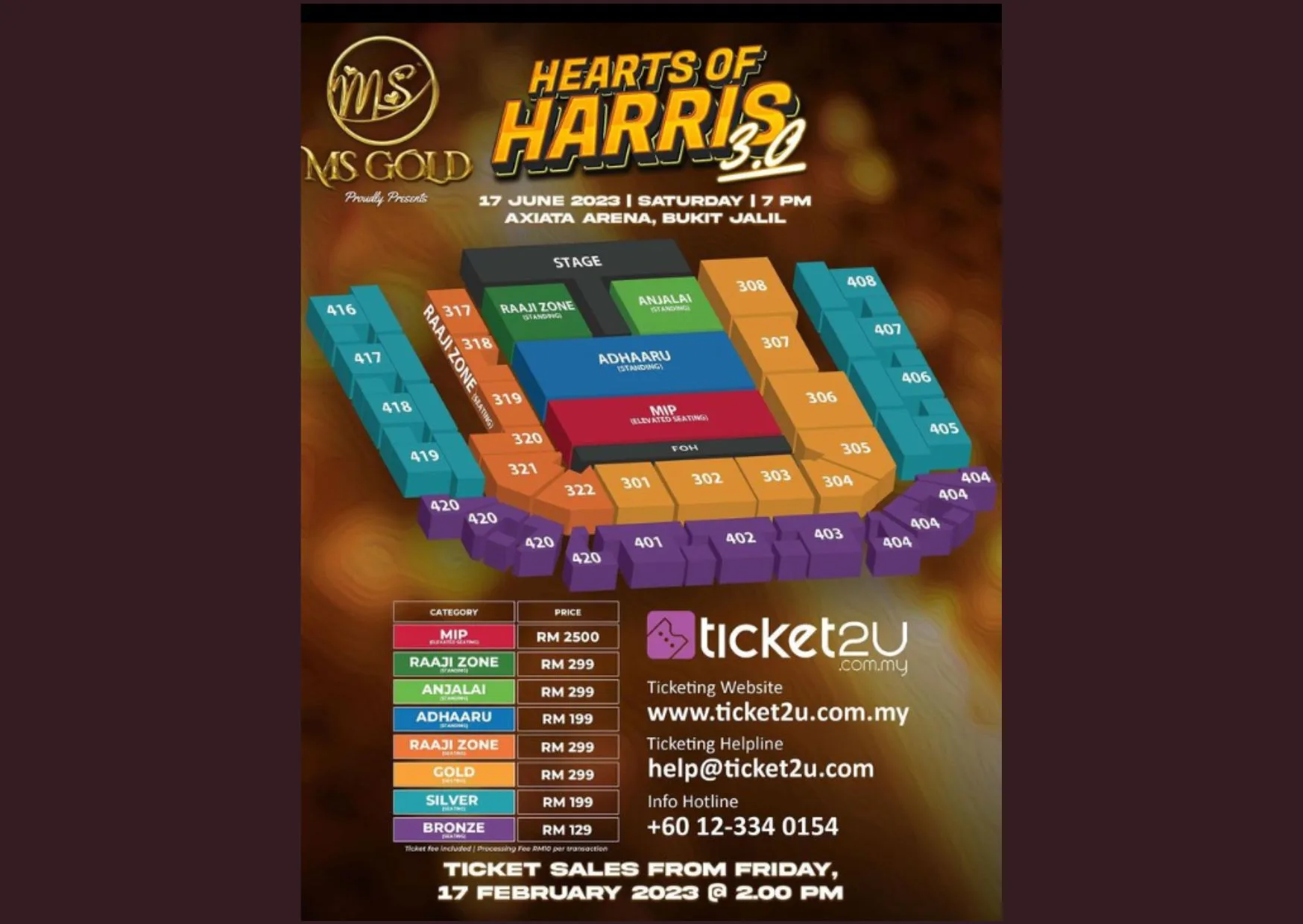 Tickets will be on sale from 2 PM onwards today, 17 February 2023. Click HERE to purchase your tickets to the Hearts Of Harris 3.0 Live in Kuala Lumpur.