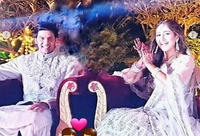 The wedding festivities have begun at Sayyeshaa and Arya’s household with a grand pre wedding ceremony, possibly a sangeet, held in Mumbai on Friday.