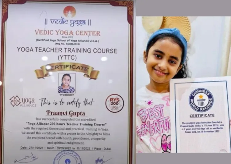 A seven-year-old girl named Praanvi Gupta has set a new Guinness World Record by becoming the Youngest Certified Yoga Instructor in the world. Praanvi, hailing from India and living in Dubai, was approved and certified by the Yoga Alliance after completing a 200-hour training course.