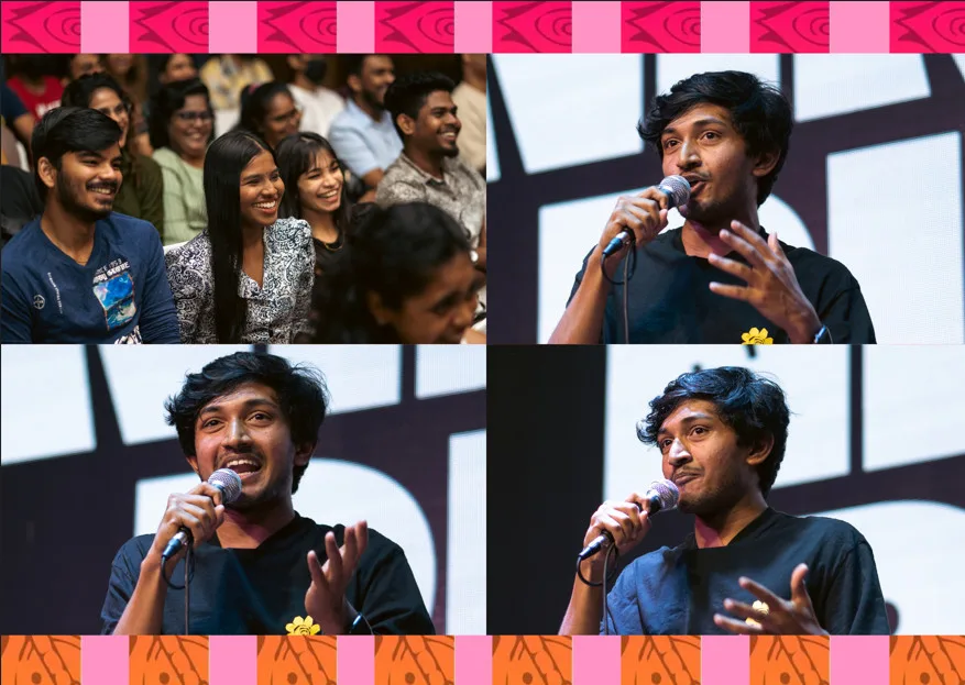 The 25-year-old, Nirmal Pillai took the baton and ran the first half of the show. Upon stepping on the stage, he kicked off by greeting the audience. He starts conversing with the audience with his comedic humour. One of the best picks of the audience during his time was the DOCTOR. The entire PG-18 content conversation between them both cracks up the entire hall.