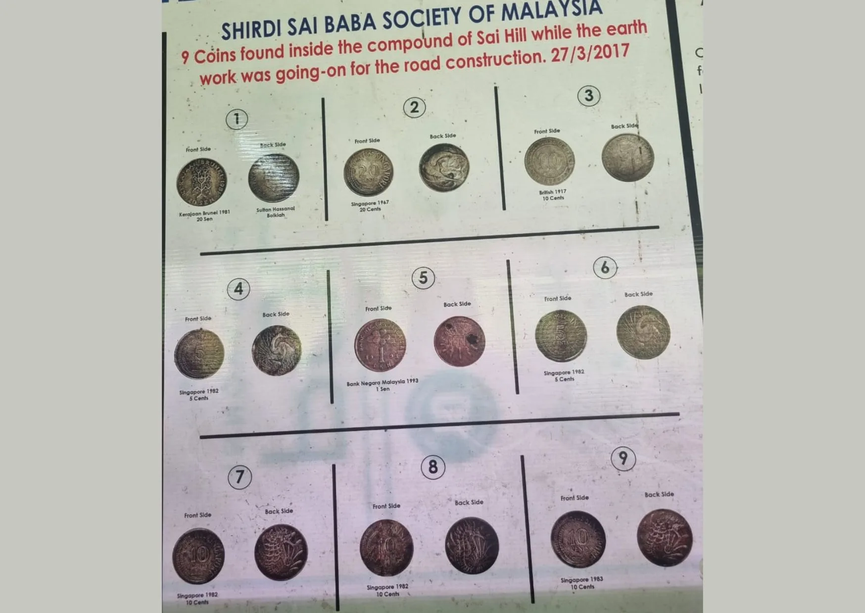 According to his narration on a banner, he found “9 coins” on 27 March 2017.