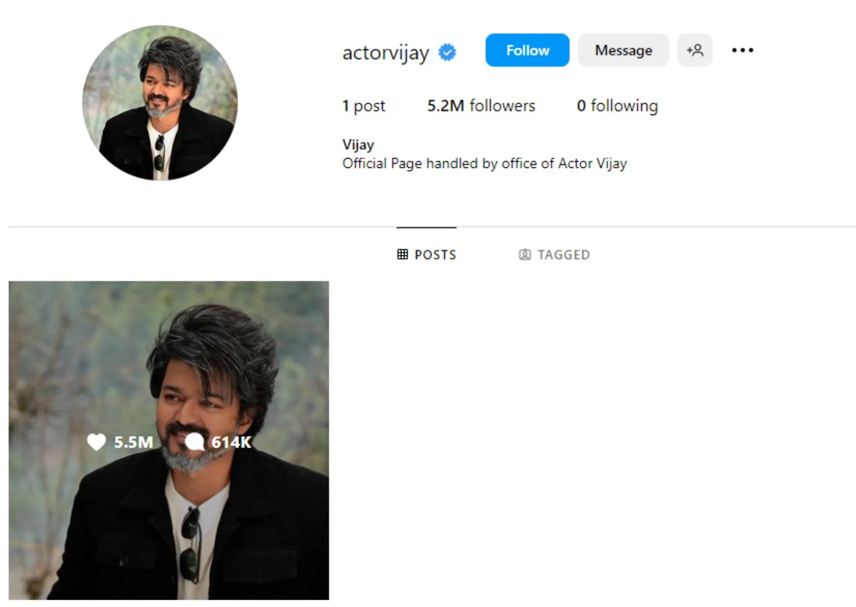 Popular South Indian actor Thalapathy Vijay has finally joined the social media world by opening his official Instagram account.