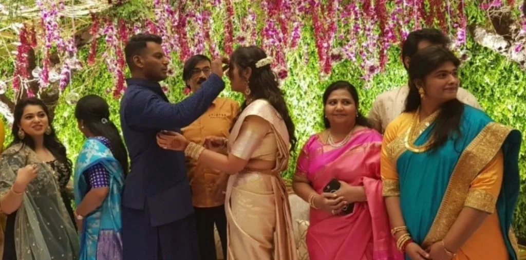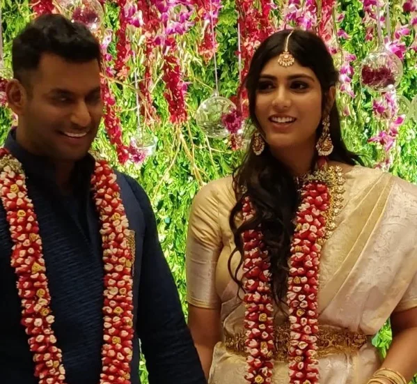 Vishal and Anisha Alla Reddy got engaged over the weekend. The ceremony was held for close family and friends at a luxury hotel in Hyderabad on Saturday.