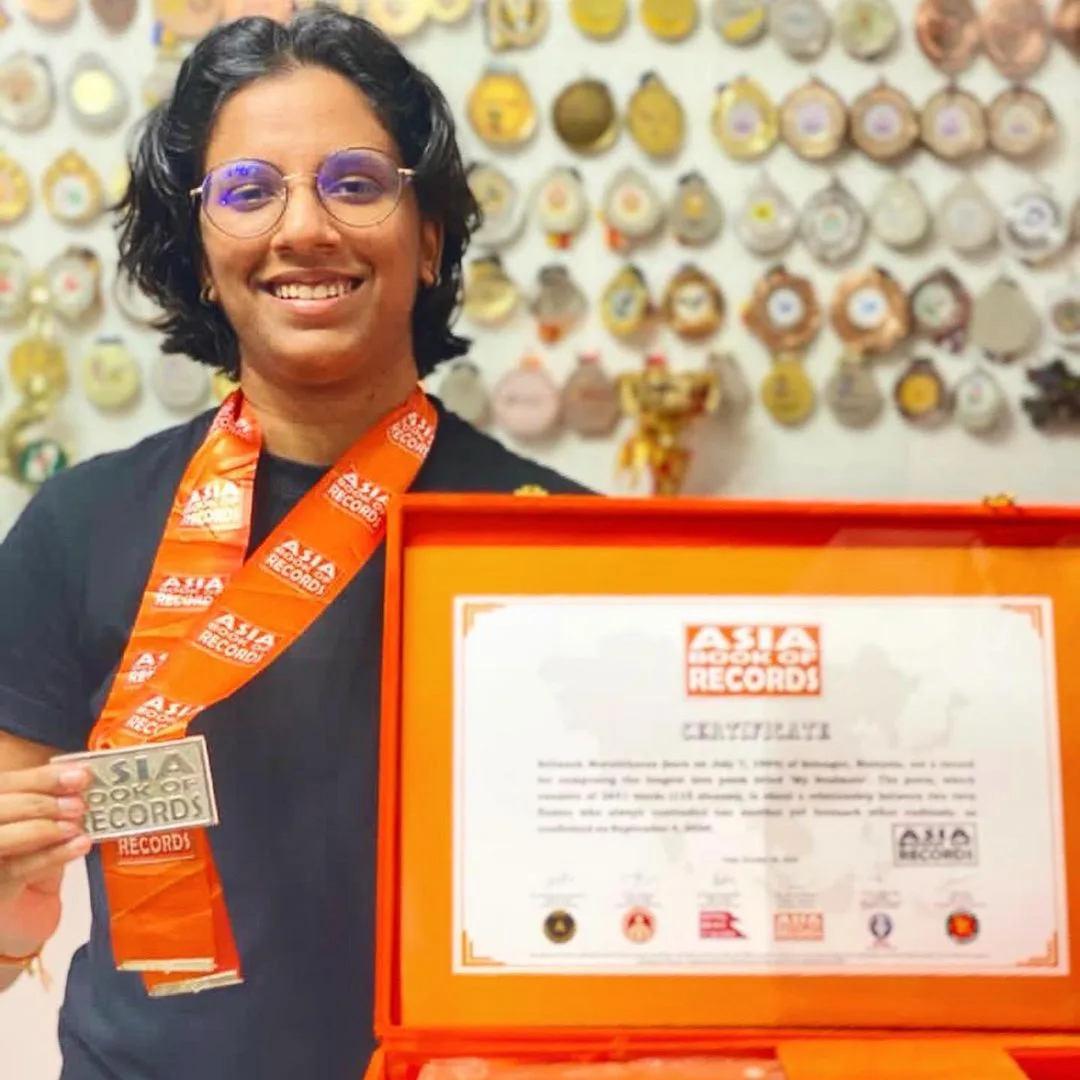 Prior to this incredible feat, this 24-year-old lass enters into Asia Book of Records for composing the Longest Love Poem in the region. Then, she sets her first Malaysia Book of Records in April 2019 for writing the longest love poem (in English) in the world.