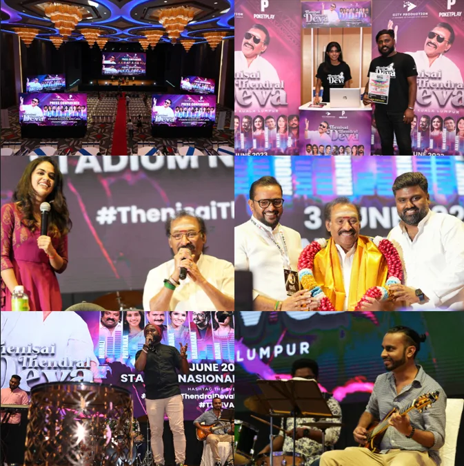 The music world gears up for an unforgettable night of Tamil renditions as legendary Indian music composer and singer Thenisai Thendral Deva is set to perform live at the Bukit Jalil National Stadium on June 3rd, 2023. Yesterday, the press conference of the “Thenisai Thendral Deva Live in Kuala Lumpur” took place at TSR Ballroom Shah Alam. Helmed by City Production and PoketPlay, this press conference was bestowed with the presence of the star of the show, Thenisai Thendral Deva.