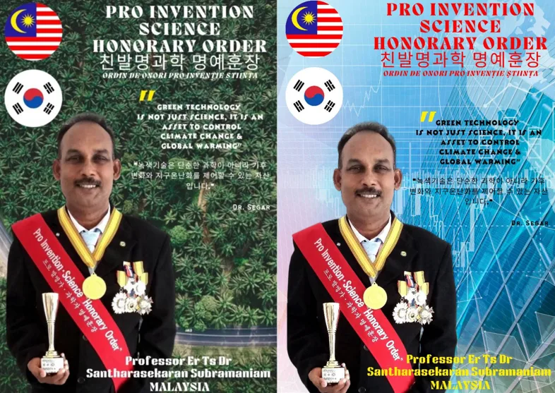 Dr. Santharasekaran, the man behind many innovative creations, has been named the recipient of an Honorary Scientist Award in the Field of Innovation and Design in Korea. This is one of the highest awards in the arena of science and technology, specifically green technology, at the global level. His brilliant record has also been published in a special magazine for the South Korea issue for the year 2023.